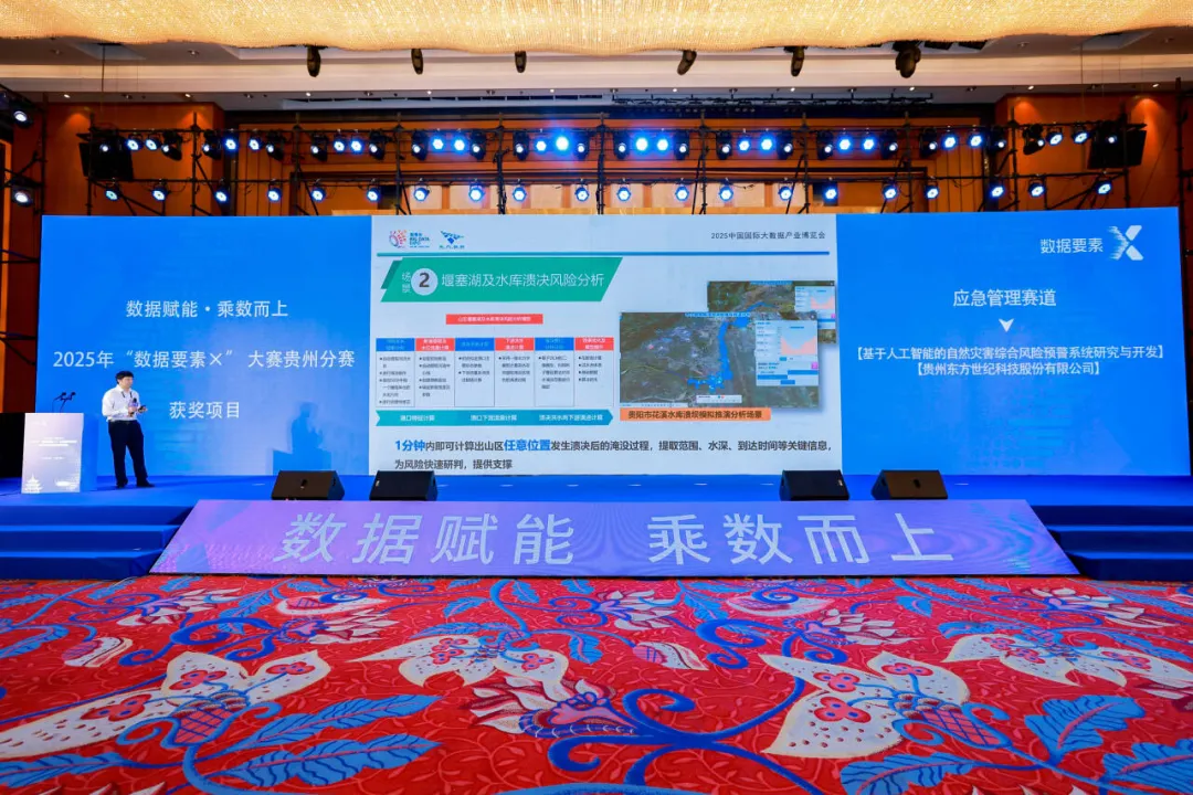 喜讯丨东方科技创新成果荣获“数据要素×”大赛一、二等奖发表时间:2025-08-29 16:46 近日,在2025年“数据要素×”大赛中,我公司申报的“基于人工智能的自然灾害综合风险预警系统研究与开发”和参与申报的“重庆市防汛抗旱数智化关键技术及应用”两个项目分别在贵州分赛中荣获贵州分赛应急管理赛道一等奖、重庆分赛中荣获重庆分赛应急管理赛道二等奖的佳绩。